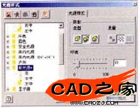 光源樣式應當理解為”光照樣式”,它所定義的是對象在渲染時的燈光效果。點擊光源樣式按鈕,彈出光照樣式對話框(見圖7)。