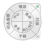 如圖示,可以進行“縮放、平移、動態觀察、設定中心”等操作,利用“回放”可以選擇回到先前的視圖。