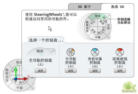 ViewCube和SteeringWheels是AIP2009中新增加的觀察工具。