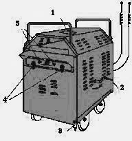 1-電流指示盤 2-調(diào)節(jié)手柄(細(xì)調(diào)電流) 3-接地螺釘