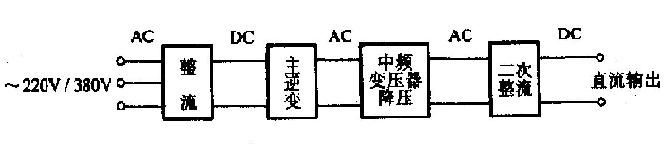 提高了變壓器的工作頻率,使主變壓器的體積大大縮小,方便移動(dòng);提高了電源的功率因數(shù);有良好的 動(dòng)特性;飛濺小,可一機(jī)多用,可完成多種 焊接。其原理框圖如下: