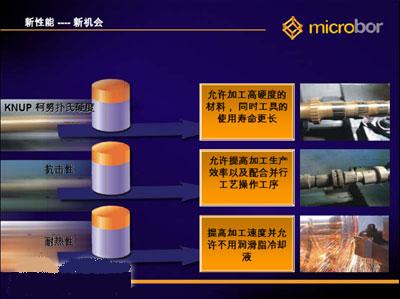 還將繼續(xù)開發(fā)不同種類的Microbor產(chǎn)品用在航空工業(yè),木材加工,石材加工,碳-玻璃鋼,巖石的鉆探。