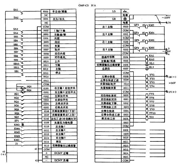 目前,在我國可編順序控制器(PC)已普遍應用,為了提高設計速度,我們將常用的AB公司、西門子公司、立石公司等的PC150余種的地址分配表在AutoCAD下繪出,分類存入計算機中,并將此納入AutoCAD菜單中,根據需要可隨時調用??捎檬髽它c出需要的PC的I/O地址分配表。例(見圖3)。