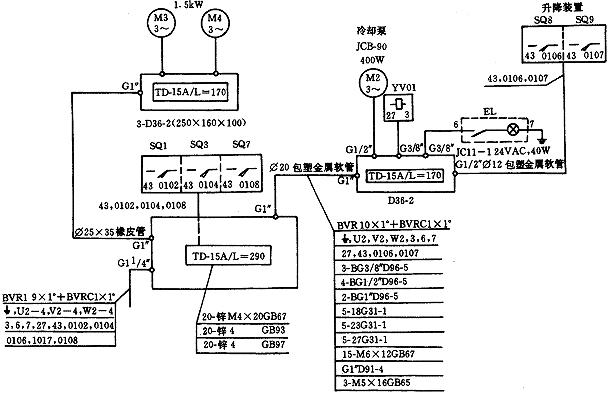 把典型機床部件、操縱臺面板圖等做成子圖,在AutoCAD繪圖軟件支持下,可以快速繪出機床接線互聯圖。例(見圖5)。