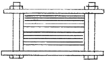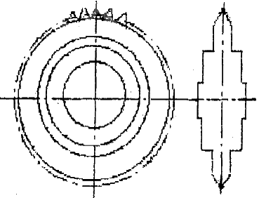 - 利用冷卻過程的“相變超塑性”直接進行校直,且使用專用卡具在每片產品間加入墊片,加壓夾持。如圖1、圖2 所示為密齒鋸片簡圖及所使用的卡具。