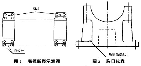 2) 底板斷裂一處,見圖1 ,已裂透。