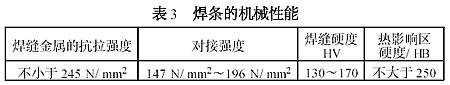 Z308 焊條的機械性能見表3 。