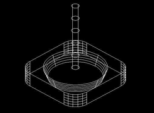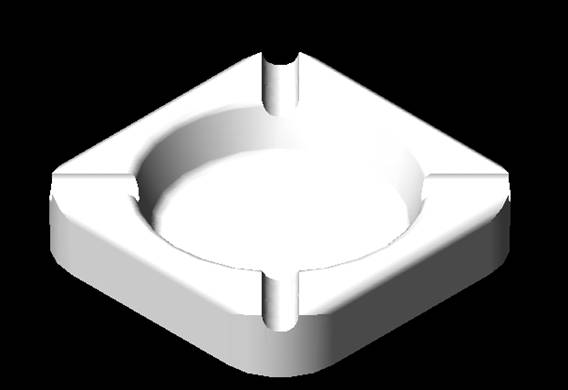 執(zhí)行差集命令” subtract”,選中長方體,確定后選擇圓錐臺回車,將長方體里的圓錐臺挖去。用倒圓角命令”fillet”將長方體的四條邊倒圓半徑20的角。