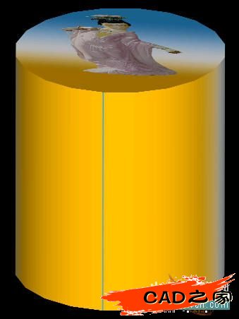 只在圓柱體的體面貼圖,方法之三:可將作為貼圖用的圖片予以再編輯,增加上下、左右的空白或彩色面,然后賦給柱體或筒體。