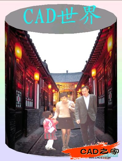具體方法是:先將主圖片附給柱體,并用“貼圖”功能調(diào)整為滿布圖像。接著創(chuàng)建一個小的曲面,附給配景圖(如人物),與此同時在修該配景圖的“透明度”中再附給一個不透明的圖片貼上(這里指的是與之配套人物的不透明圖像),最后一道渲染成圖。這樣就只現(xiàn)人物,不現(xiàn)面域陰影,而與柱面貼的主圖連接無縫了。請看下圖:主圖是古式平房圖,而人物是圖中之貼圖。