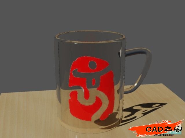方法是:先將文字用txtexp命令炸開,再拉伸為立體,然后一個一個字的移動到曲面,接著給柱體附圖片材質(zhì),一道渲染而成。下圖在盅子的面上貼了舞動的北京的象形字“京”,就是這樣做的。