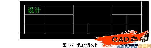 (5)現在用另一種方法來創建文字。將圖形中標題欄部分放大,選擇菜單【Draw(繪圖)】→【Text(文字)】→【SingleLineText(單行文字)】,并按提示進行如下操作: