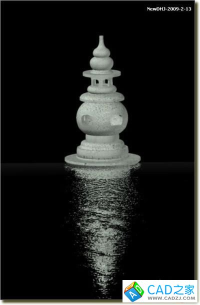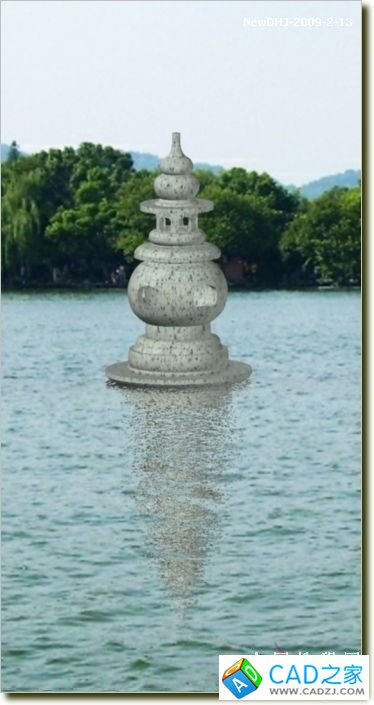 6、添上背景圖渲染的效果。其中香爐腳圖形水下部分圖形有遮擋作用;對前面圖形有鏡像圖,但經(jīng)過凹凸貼圖的圖形變形了:對背景圖卻透明,與背景圖溶入為一體。