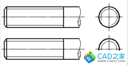 螺紋的牙頂用粗實線表示,牙底用細實線表示。在不反映圓的視圖上,倒角應畫出,牙底的細實線應畫入倒角,螺紋終止線用粗實線表示,螺尾部分不必畫出,當需要表示時,該部分用與軸線成15°的細實線畫出,在比例畫法中,螺紋的小徑可按大徑的0.85倍繪制。在反映圓的視圖上,小徑用3/4圓的細實線圓弧表示,倒角圓不畫。