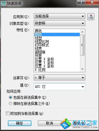 第一步:先選中一個(gè)燈具,右擊特性,看它在圖層的名字叫什么(前提是你要數(shù)的燈具都是一樣的)比如叫“QYC燈” 這個(gè)特性窗口也先不要關(guān)。