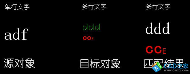 首先,文字分單行文字和多行文字,多行文字具有很多單行文字所不具備的特性;其次,多行文字對象可以設(shè)置總體的顏色和文字樣式,也可以為每行甚至每個文字設(shè)置字體、顏色,這些在多行文字編輯器內(nèi)部設(shè)置的特征,是無法匹配的。