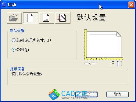 在CAD中每次新建圖形彈出“啟動”對話框,都讓我選擇公制、英制,如果要選擇自己的模板,還需要切換頁面,好麻煩!大多數人一直選擇公制或者總是使用相同模板文件,能不能在新建文件時直接使用一個默認文件,不再出現對話框和提示啊?