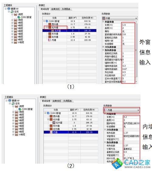 3)輸入房間信息與外墻信息