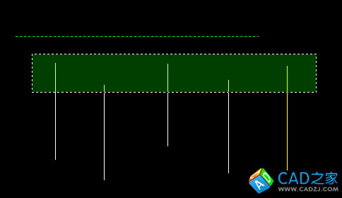 如圖,選取綠線,EX延伸命令,空格確認剪切邊選定完成,之后如圖中所示的那樣用鼠標框一下下面的白線,一定要畫在直線靠近剪切邊的一半,才能延伸,這時候用框選或者窗交,都無所謂,只要鼠標畫的范圍碰到了,就會延長。