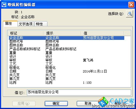 其實要了解上述這幾個參數的區別還有別的方法,比如找一些帶屬性塊的圖紙,雙擊屬性塊打開增強屬性編輯器,編輯器會自動列出圖塊中的所有屬性的標記、提示和默認值,看看別人怎么設置的,自己就更清楚了,如下圖所示。