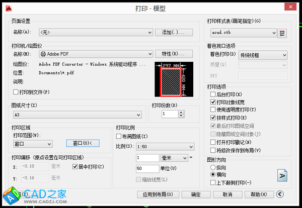 至此,整張圖紙的修改就完成了,在打印機里把紙張大小設置為A3,打印比例設置為1比50: