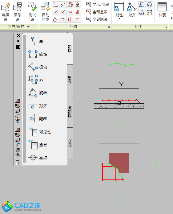 如果后面需要修改這兩個詳圖的內容,只需要雙擊這個塊,然后在塊編輯器里修改即可,比如小王發現自己忘了畫軸線了,就用塊編輯器給這兩個詳圖添加了軸線: