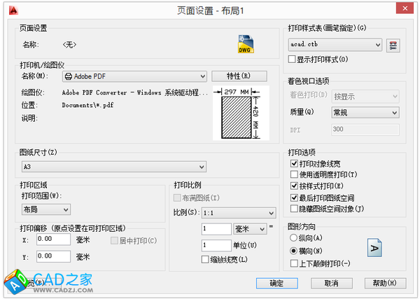 在布局的頁面設置里,把圖紙尺寸設置為A3,比例設置為1比1: