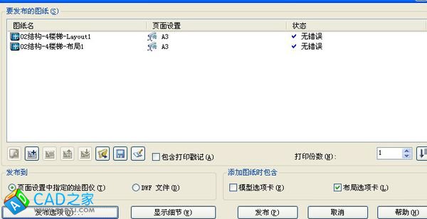 然后右鍵點所有布局 點發布所選布局,如下圖設置,發布即可。 A3只需設置一次即可 不需要每個布局都設置 如果每個布局都設置 和一張張打印沒多大區別 只能方便下次打印