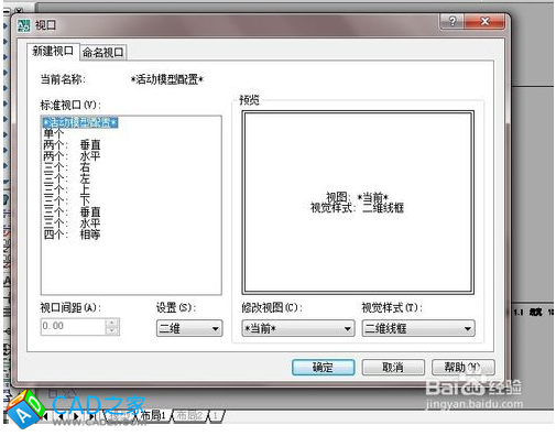 ③單擊【視圖】-【視口】-【新建視口】命令,彈出【新建視口】對話框,單擊【確定】,然后在桌面的空白處畫一個矩形框,一個新的視口就建立了。
