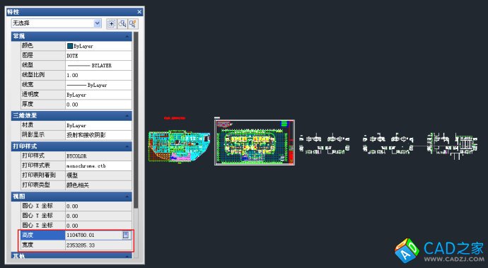雖然遇到這種問題的可能性比較小,但問題可能會跟這張圖不一樣,但希望能通過這張圖能給大家一些提示。在遇到類似的顯示問題時,可以利用特性面板看一下視圖的大小,如果視圖尺寸特別大或者特別小,可以嘗試將視圖縮小或放大到合適的尺寸,看看效果如何。如果在當時的視圖中找不到主圖形在哪兒,不妨先將視圖中能看到的東西先刪掉,全圖縮放看看,只要不保存覆蓋原文件就好了。