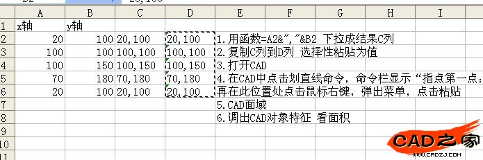 excel數(shù)據(jù)導入cad畫圖型 算面積