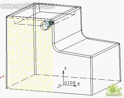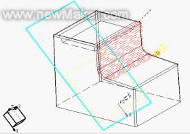 三、 本文值得強調(diào)的是加工前部R面的方法,由于刀具長度的限制,刀具垂直銑削行不通時,可以以一定的角度進行銑削,同時當R面上還有其他特征時,直接選擇加工范圍較麻煩,并且易造成刀具的突進,出現(xiàn)刀具與工件的碰撞現(xiàn)象,為此,需要建立一輔助參考面,見圖4所示,將要加工部分外輪廓垂直投影到輔助平面上。