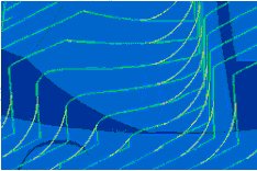 精加工采用PowerMILL的平行加工,同時采用修圓(Arc fitted)選項。NC編程人員都知道,使用平行加工策略加工陡峭面時,由于刀具路徑方向的突然變化,刀具的負荷會突然增加,同時進給率大大降低,從而延長加工時間,采用PowerMILL平行加工的修圓選項后,PowerMILL能自動讓刀具路徑在陡峭尖角處圓弧過渡(如圖5),可使刀具在最低磨損的情況下進行高速加工。
