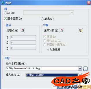 實施了第二步“瘦身”計劃后,如果效果仍然不明顯,沒關系,我們還有技巧三:“WBLOCK”命令。采用中望CAD 2009中的WBLOCK命令,把需要傳送的圖形文件用WBLOCK命令以塊的方式產生新的圖形文件,然后把新生成的圖形文件作為傳送或者存檔。如圖: