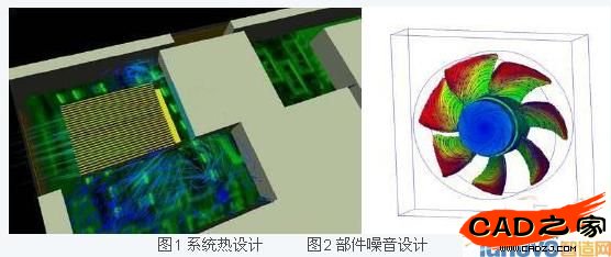 目前,在聯想產品開發中,已經大量運用計算機仿真的技術和手段來解決散熱問題,通過仿真分析,合理進行系統布局并優化系統的風路設計(如圖1所示),優化風扇扇葉和扇形的設計(如圖2所示),優化散熱器形態和齒形的設計,這些綜合手段的運用,使得聯想計算機產品(臺式電腦、筆記本、服務器)的熱設計和噪音設計達到了世界領先水平。