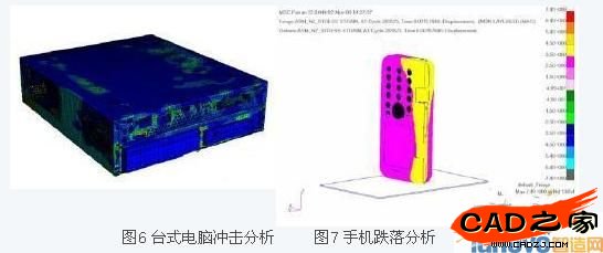 以上諸多問題,使得現代產品開發中,對于沖擊、跌落、疲勞等可靠性問題的仿真分析顯得尤其重要,聯想在各類型產品(手機、臺式機、筆記本、服務器、數碼產品)開發中,普遍應用仿真技術(如圖6、7所示),已經很好地解決了以上問題,仿真分析的實效性和準確性已經得到了長時間的實踐驗證,成為產品開發中必須環節之一。