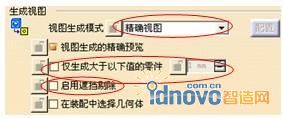 進入「選項」->「機械設計」->「工程制圖」->「視圖」界面,在「視圖生成模式」中,可以選擇「近似視圖」來縮小視圖「尺寸」。相比「精確視圖」模式,犧牲了視覺效果,卻換取了設計時間。用戶可以權衡考慮。在大型的裝配件中,有一些小型的零件由于其尺寸較小而不必在二維視圖中展現出來。「僅生成大于以下值的零件」選項,可以幫助用戶在生成視圖過程中,將這些小零件剔除。打開「啟用遮擋剔除」選項,可以減小文件對內存的消耗,縮短CPU的運算時間。