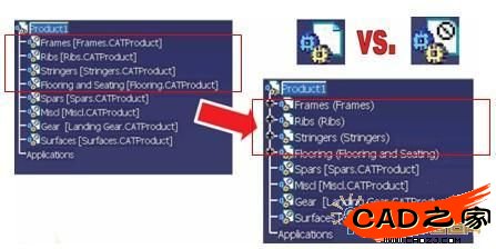 產品的結構樹在應用于大型裝配時應該考慮使其層級不宜過深,因為它將影響CATIA對文件的加載速度。因此,用戶在對大型裝配進行設計時,應當考慮如何在盡可能的情況下簡化其產品的結構樹,簡化原則是,結構樹的層級越少越好。