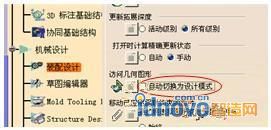 (注意,如果選擇激活「優化大型裝配可視化的CGR」選項,則需要將「選項」->「機械設計」->「裝配設計」->「常規」中的「自動切換為設計模式」選項取消,見下圖。因為這兩個選項是相沖突的。)