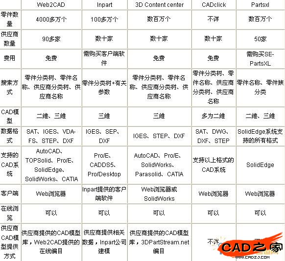 以上簡單介紹了國外基于Web的零件庫的發展現狀。這些零件庫為實現大批量定制提供了很多重要信息。表1對幾個國外的零件庫進行了簡單的比較。