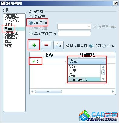 6、雙擊右側(cè)一般視圖,打開“繪圖視圖”對話框,按照圖5操作即可完成旋轉(zhuǎn)剖面視圖的創(chuàng)建。