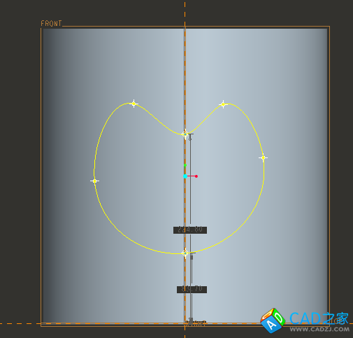 點擊“定義”,選擇FRO面進(jìn)入草繪環(huán)境,繪制如圖所示的草繪截面: