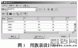 在零件設計時,如果某些零件結構一樣,只是尺寸不同,那么這些零件就不必一一單個建立,可建立一個父零件,定義各個控制零件形狀大小的參數,在設計時通過改變各個參數的值來得到所需要的衍生件,從而建立一系列的零件,這些零件組成的集合稱為族表。由于標準件的結構形狀和尺寸都已經標準化,故模具設計系統中的標準件庫采用族表技術開發,從而方便快捷地達到設計目的,圖3 為利用族表設計零件的界面。在建立父零件時應注意以下2 個問題: