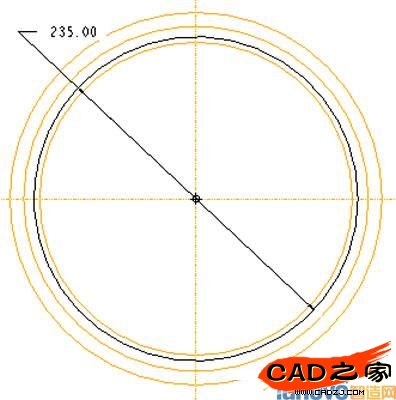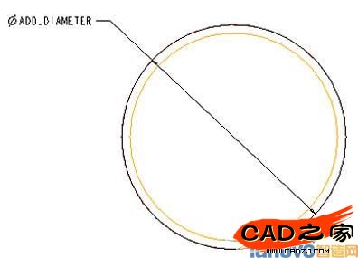 > DimCosmetics > Symbol > 選擇第二條曲線的尺寸> 輸入新尺寸名稱:ADD_DIAMETER> Done > Done> 回到PART菜單