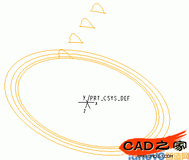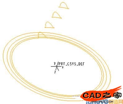 > 選擇坐標系統PRT_CSYS_DEF> Z axis> Flip | Okay> 輸入數值:helix_angle/3> Done Move> Done> OK> Done > 回到PART菜單