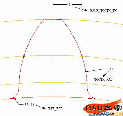 > 輸入方程式:TOOTH_RAD=PCD/8 > 回車