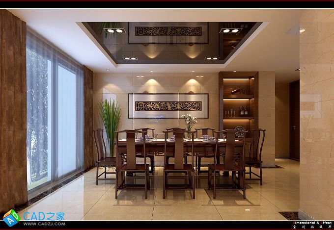 LFT戶型新中式裝修設計全套效果圖及施工圖