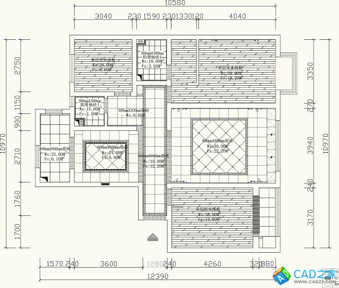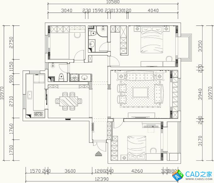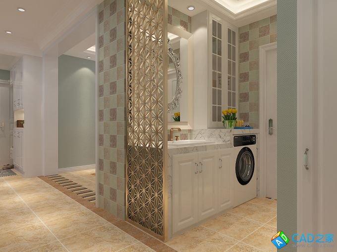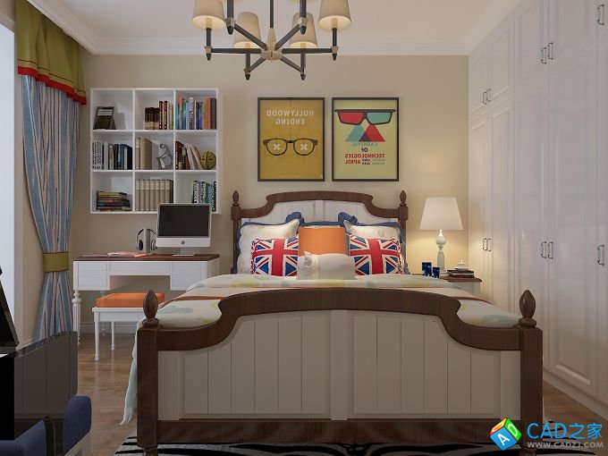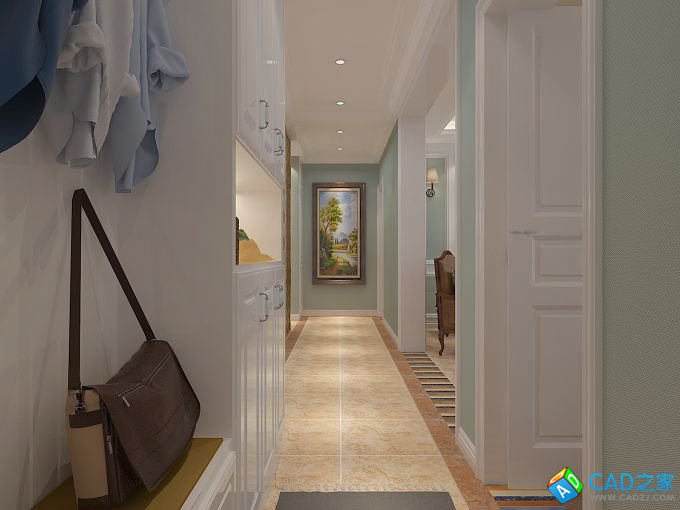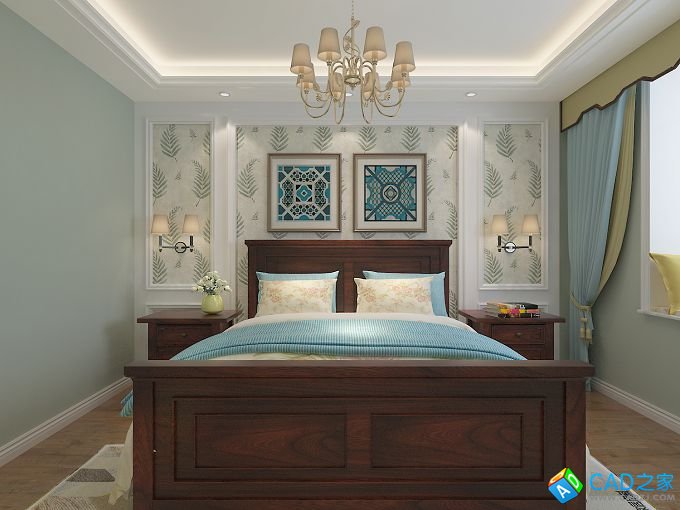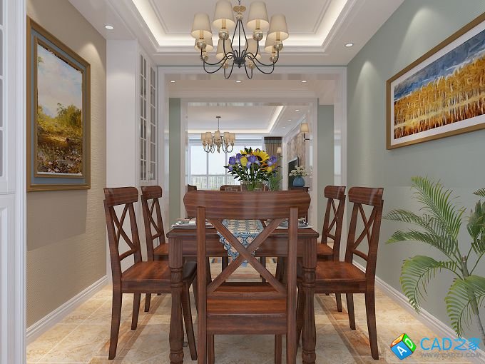 三室兩廳兩衛(wèi)美式風(fēng)格施工圖+效果圖+客廳模型下載