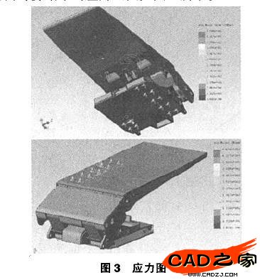 利用Cosmos/works有限元分析軟件可對支架數(shù)字實體模型進行應(yīng)力分析,找到應(yīng)力分布規(guī)律,確定安全系數(shù),優(yōu)化結(jié)構(gòu)尺寸。