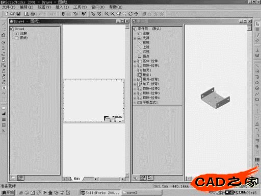 4.2單擊窗口→縱向平鋪,將工程圖文件和鈑金文件同列于視窗如圖7所示。